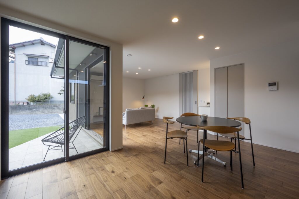 中庭はLDKと一体的に使えるため、住まい全体に豊かな広がりとつながりが生まれている。